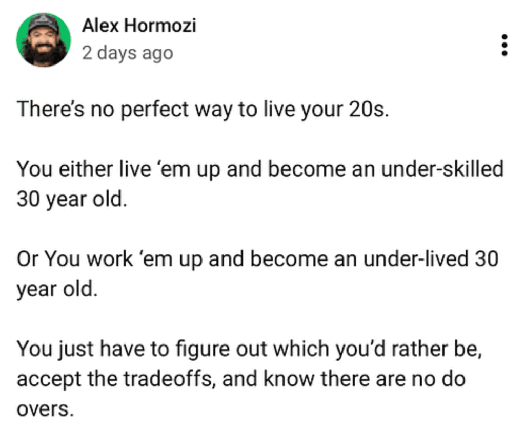 But could easily nuke your 20’s if you take it too seriously.